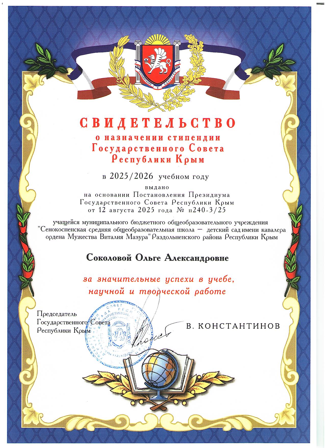 МУНИЦИПАЛЬНОЕ БЮДЖЕТНОЕ ОБЩЕОБРАЗОВАТЕЛЬНОЕ УЧРЕЖДЕНИЕ "СЕНОКОСНЕНСКАЯ СРЕДНЯЯ ОБЩЕОБРАЗОВАТЕЛЬНАЯ ШКОЛА-ДЕТСКИЙ САД ИМЕНИ КАВАЛЕРА ОРДЕНА МУЖЕСТВА ВИТАЛИЯ МАЗУРА" РАЗДОЛЬНЕНСКОГО РАЙОНА РЕСПУБЛИКИ КРЫМ